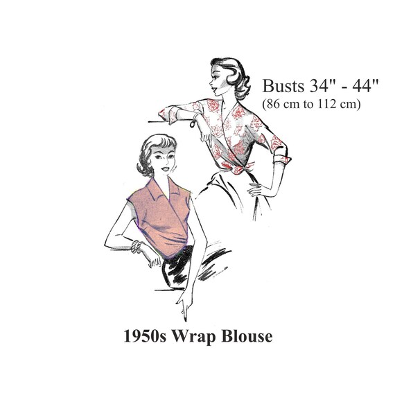 1950s Wrap Blouse Top Sewing Pattern Busts 34 44 Pdf Instant Etsy